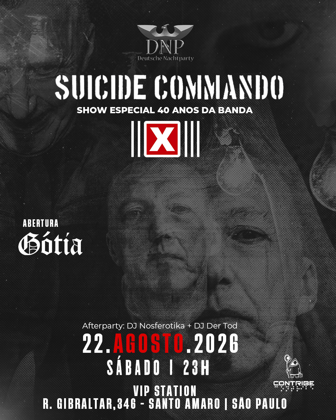 Nascida em 2018 no underground carioca, a DNP – Deutsche Nachtparty (Festa da Noite Alemã) surgiu como um espaço dedicado à cultura gótica, eletrônica e fetichista. Inspirada nas noites darks da Alemanha, a festa foi criada para unir música, estética e liberdade em experiências intensas e imersivas.